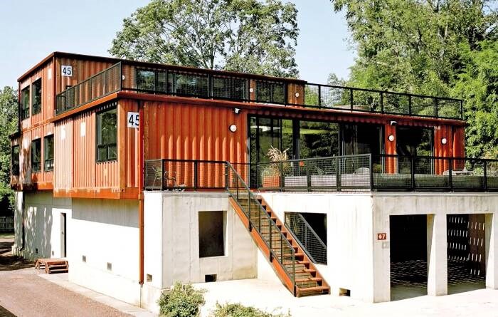 集裝箱房屋由于建造快速,現(xiàn)代感強(qiáng),成本不高,在度假、辦公、旅游營(yíng)地等領(lǐng)域使用已經(jīng)非常廣泛。